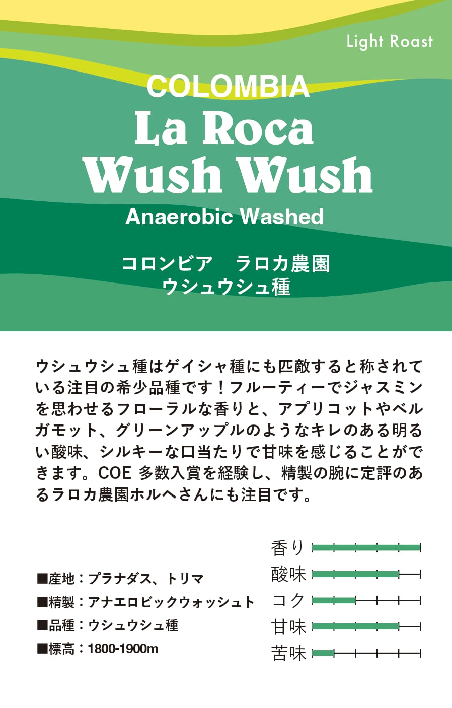 コロンビア ラロカ農園ウシュウシュ種 Anaerobic Washed/ 珈琲豆100g